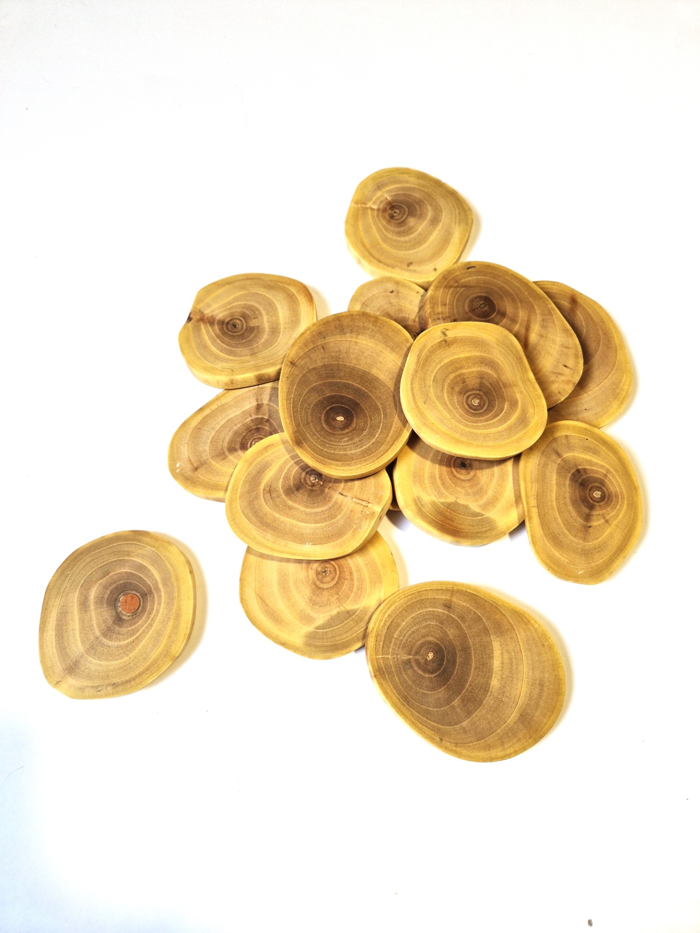 Ezek a természetes diófából készült, egyedi erezetű fa szeletek tökéletes alapanyagot nyújtanak különféle kézműves, dekorációs vagy barkácsprojektekhez. Minden egyes darab egyedi mintázatú, különböző árnyalatú évgyűrűkkel, melyek elegáns és rusztikus megjelenést kölcsönöznek bármilyen alkotásnak.
